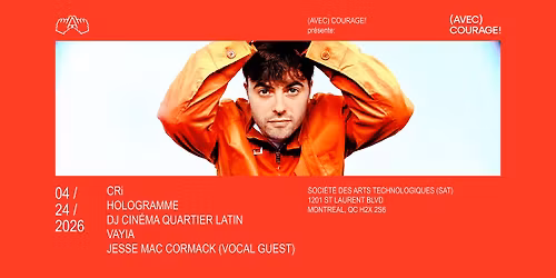 Find tickets & information for CRi (et invités) | Montréal. happening at Société des arts technologiques [SAT], Montreal, QC on Fri, 24 Apr, 2026 at 10:00 pm EDT. Register or Buy Tickets, Price information.